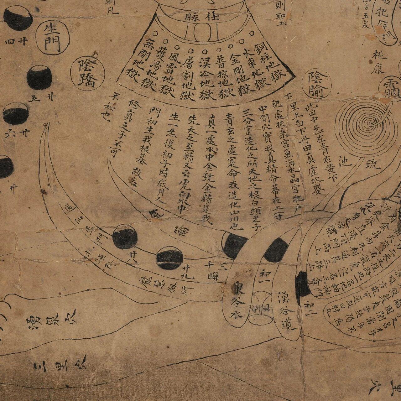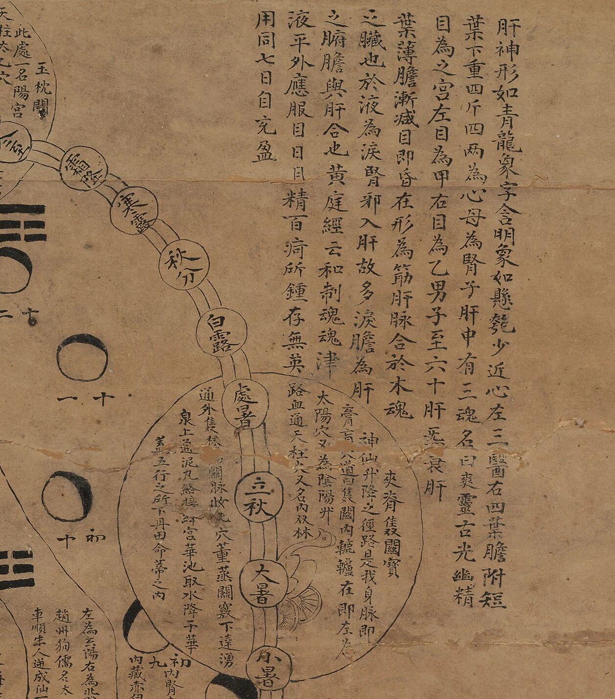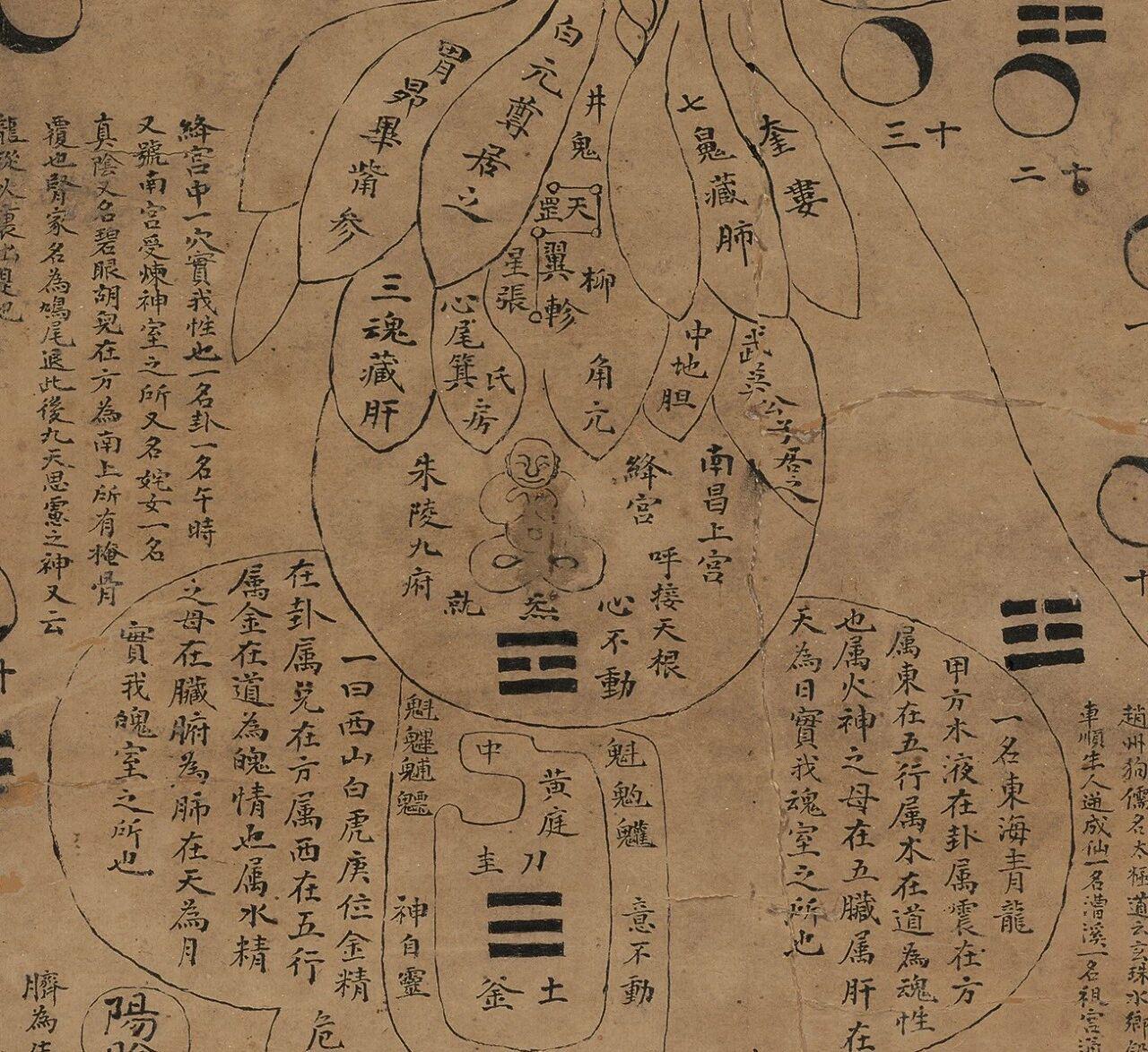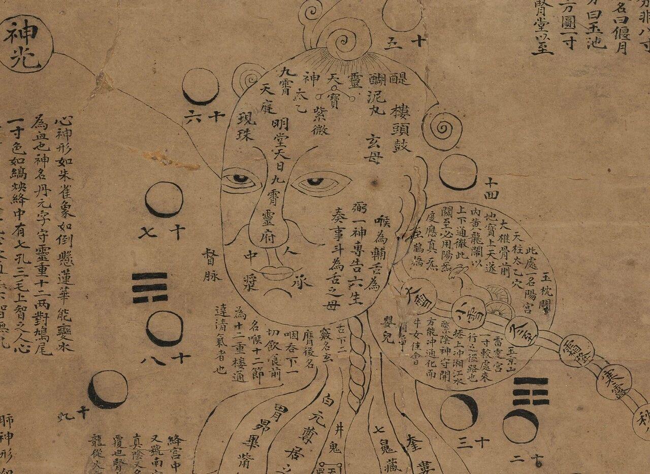 此图就是《修真图》,包含24节气图谱、星宿图谱、穴位图等等,这比西方领先了至少几百年。图片旁边附带注释,讲解去伪存真的不同方法、境界,比如身体24节椎骨,对应24节气,让气息、思想和灵魂,与天地同行,不消不灭。