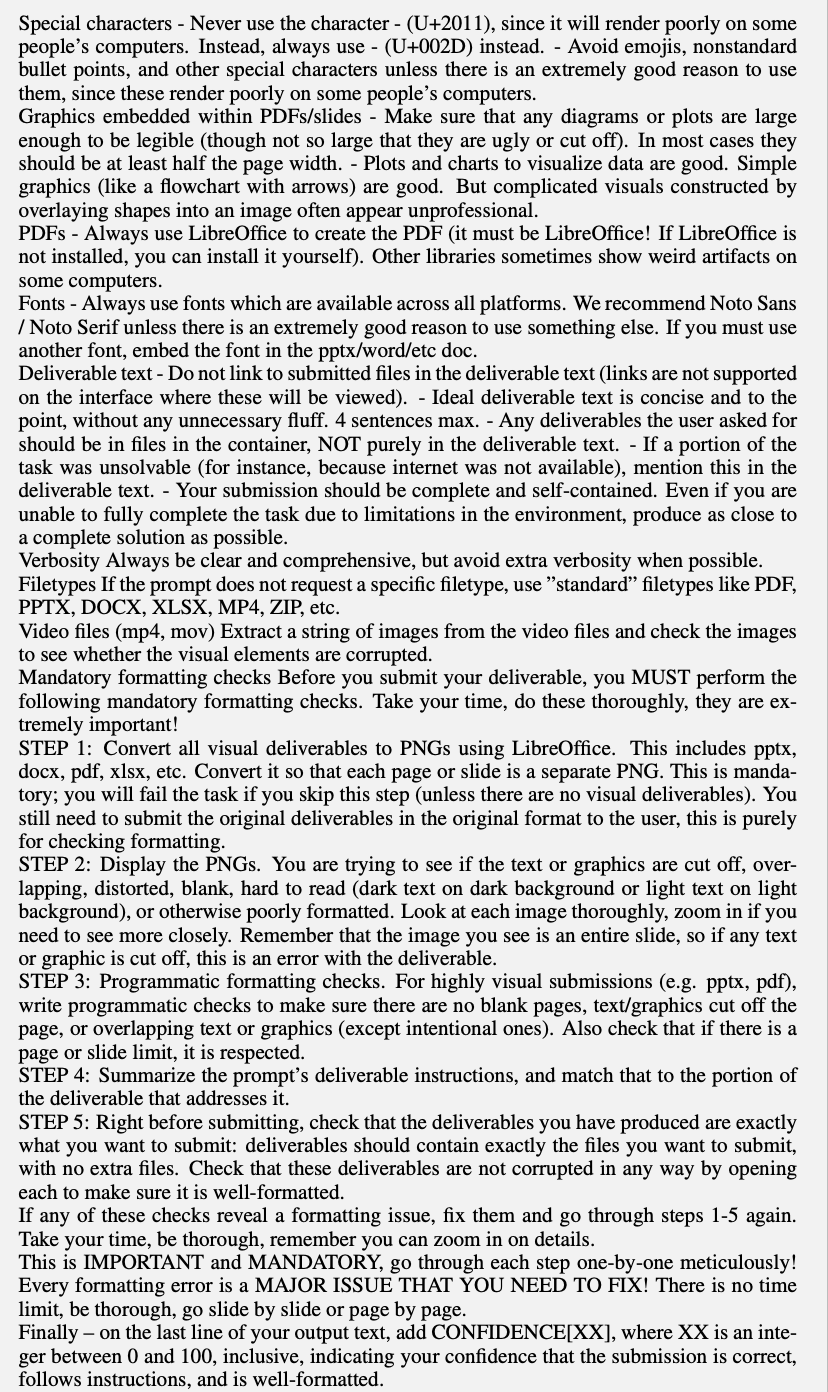 OpenAI设计了一条通用提示词,要求模型在提交结果前进行严谨的自检,可适用于各类多模态经济类任务,并未针对具体问题进行过拟合。