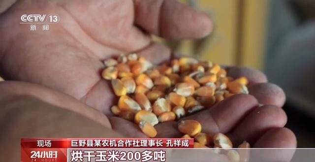 巨野县某农机合作社理事长 孔祥成:玉米收获后,直接进入烘干塔进行烘干,目前每天能够收获玉米500多亩,烘干玉米200多吨。